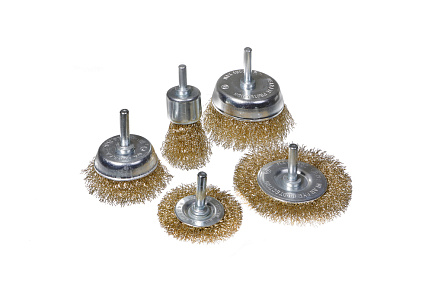 - Состав набора : радиальные 2 шт: 50 мм и 75 мм; чашеообразные 2 шт : 50 мм и 75 мм; кистеообразная 1 шт: 25 мм.