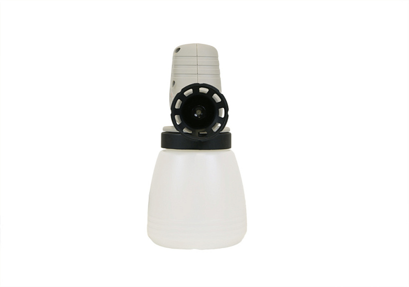 Нижнее расположение резервуара для краски и малый вес распылителя делает инструмент удобным при длительном использовании.