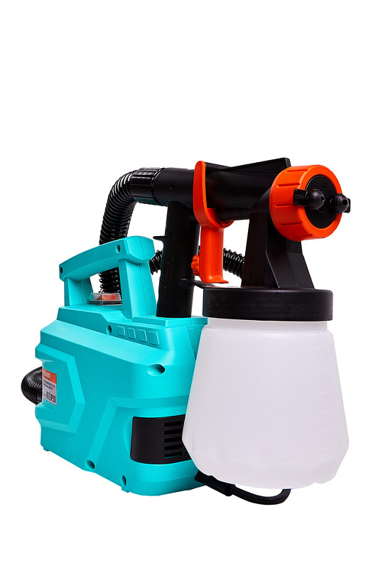 Краскораспылитель оснащен мощным 600 Вт электромотором, обеспечивающим высокую производительность (до 1100 мл / мин) и позволяющим эффективную работу с лакокрасочными материалами максимальной вязкостью до 50 DIN. Используемая технология покраски – HVLP (High Volume / Low Pressure) – характеризуется большим объемом воздуха и низким давлением – данное техническое решение гарантирует равномерное нанесение лакокрасочного материала, способствуя более высокому проценту его переноса на поверхность заготовки. Притом, потери на разбрызгивание и образование тумана остаются на минимальном уровне. В случае необходимости пользователь может настроить оптимальный для себя расход краски, а также установить нужный тип распыляемой струи: горизонтальный, вертикальный или круговой для комфортной работы в горизонтальной или вертикальной плоскостях.