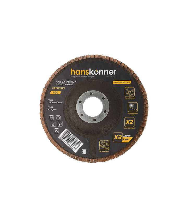 Круг зачистной лепестковый ЦИРКОНИЕВЫЙ 125х22, зерно 60, Hanskonner