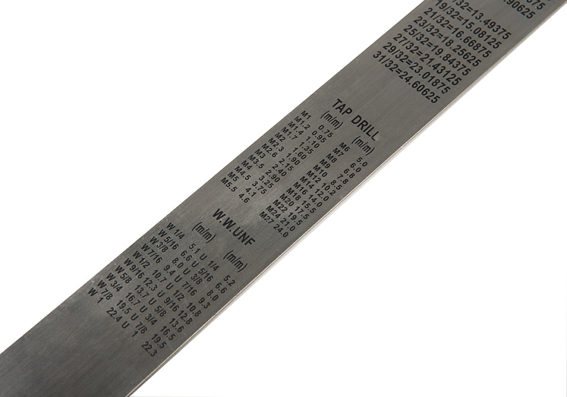 Антикоррозионное покрытие обеспечивает долговечность инструмента, а таблица величин, нанесенная на оборотную сторону линейки поможет в столярных работах.