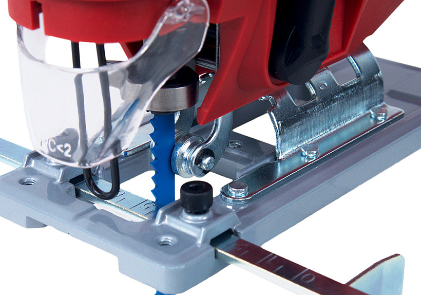 Энергомаш ГАРАНТ ЛБ1-1000 – универсальный и производительный электрический лобзик. Характеризуется небольшими массогабаритными показателями и выверенной эргономикой – надежен в хвате и отлично контролируется. Модель оснащена 1000 Вт электромотором и мощной механической частью, позволяющими реализовать высокие показатели по максимальной глубине пропила: до 100 мм в древесине и до 10 мм в металле. Благодаря цилиндрическому штуку и направляющим, способствующим повышенной точности пропила, лобзик отлично подойдет для деликатных работ. Применение в конструкции литой, алюминиевой подошвы, стойкой к износу и деформации, обеспечивает максимально ровный пропил и лучшую стабильность инструмента. Наиболее точно настроить лобзик применимо к конкретному материалу, позволяет электронная регулировка количества ходов штока в широком диапазоне (800 ¬– 3000 ход / мин), а также функция маятникового хода с четырьмя режимами – пользователь выбирает необходимый режим работы с упором на максимальную производительность, либо максимальное качество реза с наименьшим количеством сколов. Для удобства пользователя, Энергомаш ГАРАНТ ЛБ1-1000 получил механизм безынструментальной замены пильного полотна и LED подсветку рабочей зоны. Дополнительный комфорт при работе обеспечивает система удаления пыли непосредственно с линии реза, способствующая максимально эффективному очищению рабочей зоны. Наличие длинного четырехметрового сетевого кабеля дает возможность использовать инструмент без применения дополнительного сетевого удлинителя, гарантируя рабочую область площадью до 50 м2.