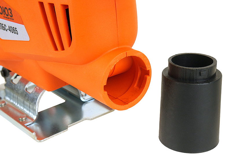 Прозрачный защитный экран, принудительный выдув опилок из рабочей зоны для лучшего обзора линии реза и дополнительная возможность подключения к пылесосу улучшает условия труда.