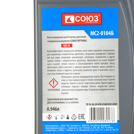 Масло 4Т минерал., OPTIMAL, 0.946 л, СОЮЗ