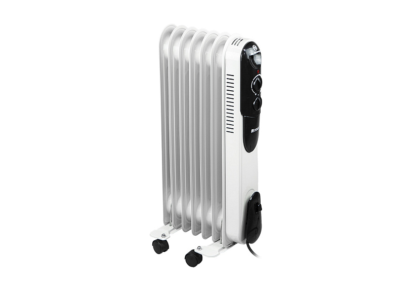 СОЮЗ МРС-1507 — современный и эргономичный масляный радиатор на семь секций — предназначен для обогрева небольших помещений площадью до 15 м2. Благодаря нагревательному элементу мощностью 1,5 кВт обогреватель быстро набирает рабочую температуру, а большое количество секций, позволяют эффективно и равномерно распределять тепло. Модель имеет простое и интуитивно понятное управление с помощью механических регуляторов, расположенных на передней панели. С помощью одного регулятора пользователь выбирает оптимальный режим нагрева из трех возможных: эконом/умеренный/максимальный. Назначение второго регулятора — управление настройкой термостата, задача которого — автоматическое поддержание постоянной температуры в помещении. Для визуального контроля включенного устройства предусмотрен отдельный индикатор питания, также размещенный на панели управления. Устройство оснащено термозащитой и датчиком опрокидывания, что предотвращает риск возникновения пожароопасных ситуаций. За счет компактных габаритных размеров масляный радиатор СОЮЗ МРС-1507 не доставит неудобств при хранении, а небольшая масса прибора и наличие транспортировочных колес на установочных ножках сделают его перемещение с места на место простым и удобным.