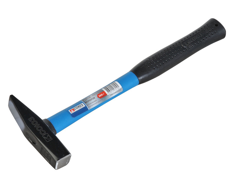 Молоток слесарный, кованый боек, 200 г, фибергласовая рукоятка, СОЮЗ