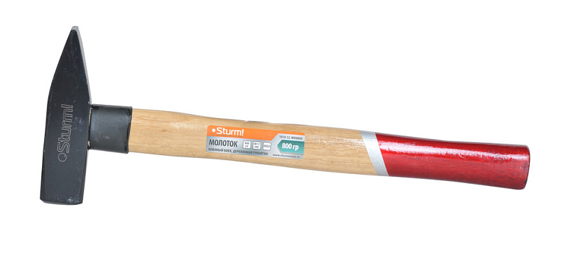 Молоток слесарный кованый боек, 800 г, деревянная рукоятка Sturm!