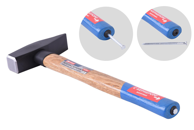 Молоток оснащён УНИКАЛЬНОЙ ЗАПАТЕНТОВАННОЙ системой крепления кернера в рукоятке, которая решает проблему пользователя с поиском дополнительного инструмента для визуальной разметки и позволяет полностью сконцентрироваться на работе.Кернер крепится за счёт упругой резиновой втулки, которая надёжно удерживает его в процессе работы, а так же позволяет с лёгкостью достать и поместить обратно.