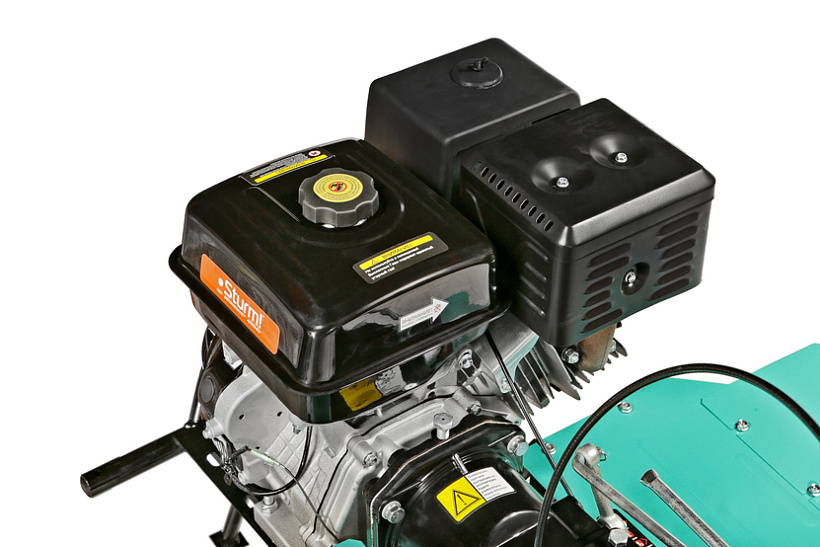Мотоблок оснащен мощным 4-х тактный одноцилиндровым двигателем, мощностью 15 л.с. объемом 420 см3 и многоступенчатым редуктором, которые позволяют обрабатывать, за один проход, полосу земли шириной 1 м. При использовании пневматических колес, мотоблок с легкостью управляется с прицепом.