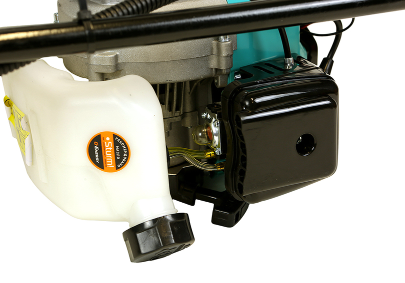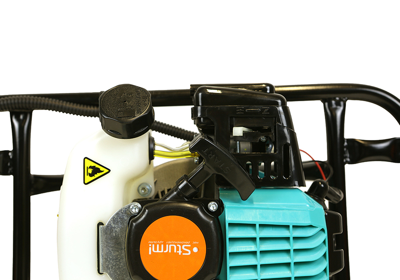 Мотобур Sturm! EA1520. Увеличенное передаточное число редуктора 40:1 (на 30% выше, чем наиболее часто встречающийся стандарт 30:1) определяет высокий крутящий момент, достаточную силу для бурения в тяжелых грунтах. Шестеренчатый редуктор обеспечивает плавность хода бурового инструмента при работе, не создает избыточной вибрации и шума при работе. Система подкачки топлива (праймер) для легкого старта холодного двигателя. Фиксация клавиши включателя для удобства при продолжительной работе. Прочная стальная рама для уверенного бурения.