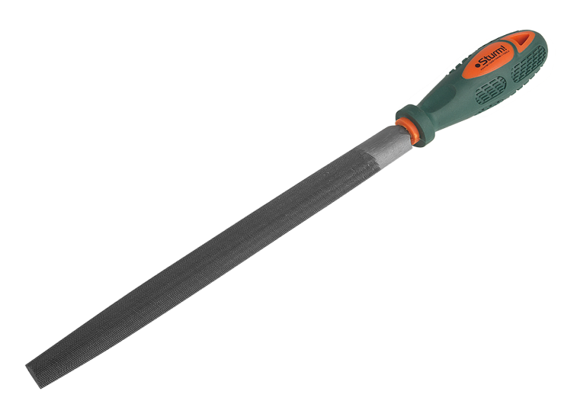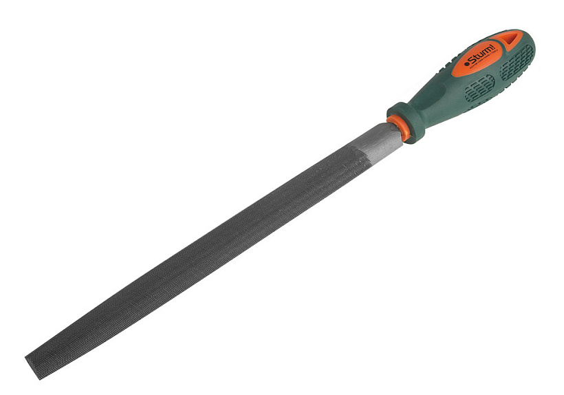 Напильники наиболее распространенными и популярными инструментами для слесарной обработки металлов. Рабочая часть выполнена из качественной инструментальной стали марки Т12 и имеет двойную перекрестную насечку. Рукоятка выполнена из пластика и имеет специальное противоскользящее покрытие инструмент по обработке твердых металлов, таких как сталь и чугун.