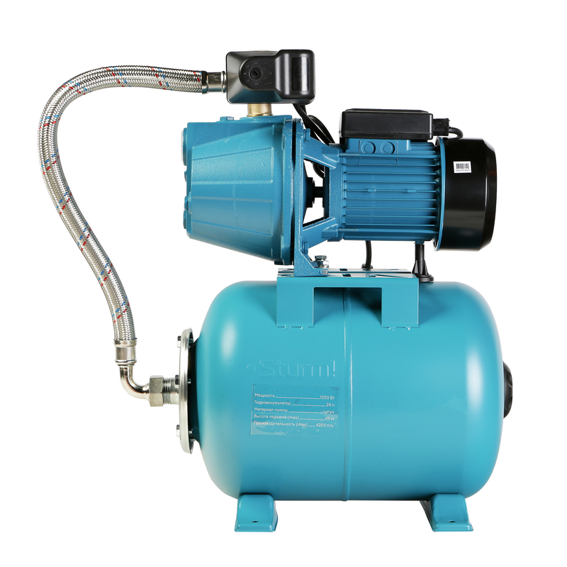 Sturm WP97120CI — автоматическая насосная станция для перекачивания чистой воды, без примесей песка, грязи и других частиц. Предназначена для широкого спектра задач: от перекачки воды из резервуаров и колодцев для снабжения водой небольших помещений. Характеризуется низким уровнем шума при работе, что позволяет использовать насосную станцию как вблизи, так и непосредственно в жилой зоне. Установленный мощный 1200-ваттный двигатель с встроенной защитой от перегрева, обеспечивает высокую производительность в 70 л/мин и максимальный напор 45 метров, кроме того, позволяет осуществлять забор воды с глубины до 8 метров. Максимальная температура воды для насосной станции Sturm WP97120ST не должна превышать 35 градусов. Модель оснащена мощным самовсасывающим насосом, вместительным 24-литровым баком гидроаккумулятора, надежным механическим реле давления SK-9 для поддержания заданного уровня давления в водопроводе, манометром и пятиходовым латунным штуцером для подключения к насосу реле давления, манометра и выходных шлангов. Корпус насосной части изготовлен из чугуна, Крыльчатка насоса выполнена из антифрикционного полимера PPO, стойкого к воздействию агрессивной среды, что способствует долговечности работы насосной части. Модель поставляется в полностью собранном виде — для ввода в эксплуатацию, пользователю достаточно подключить станцию к системе водоснабжения.