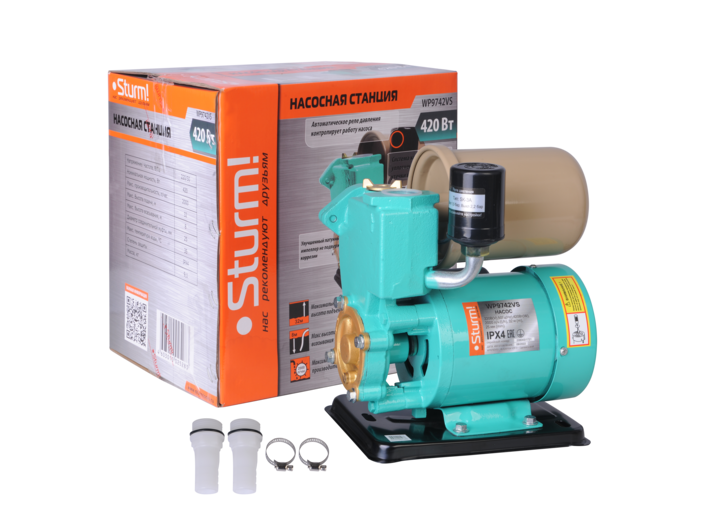 Насосная мини станция Sturm! WP9742VS служит для создания давления в водопроводной сети загородных домов, дач, в автоматическом режиме поддерживает давление в заданном диапазоне, независимо от источника воды: водопровода, колодца, скважины.