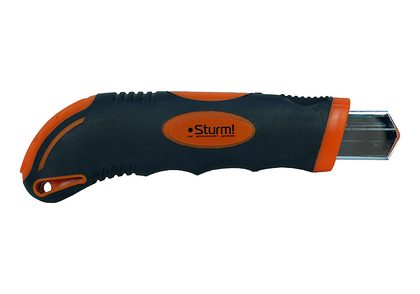 Нож строительный 18мм, 3 доп. лезвия, дополнительный фиксатор, Sturm!
