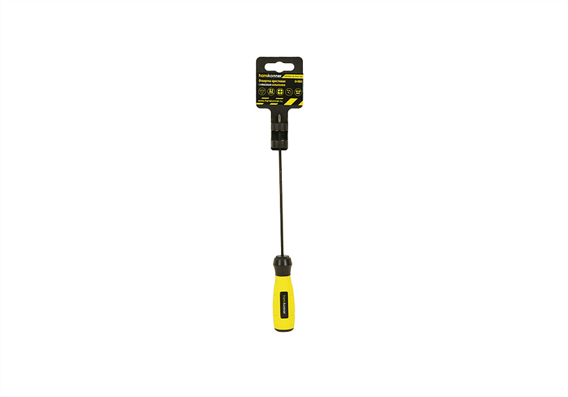 Отвертки имеют эргономичную двухкомпонентную рукоятку с рифлениями, исключающими проскальзывание, мягкая поверхность рукоятки делает работу комфортной. Рабочая часть выполнена из стали марки S2, наконечником с алмазным покрытием,что определяет ее прочность и износостойкость. Жало отвертки намагничено для удержания метизов при работе.