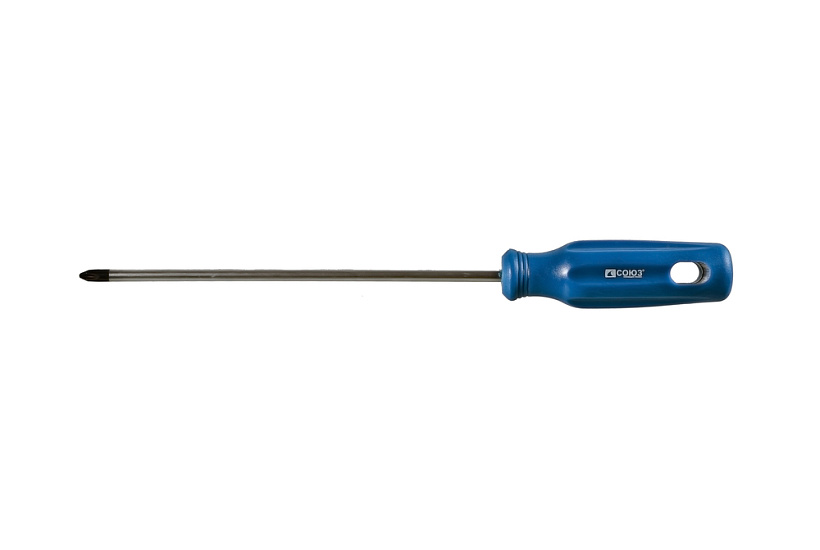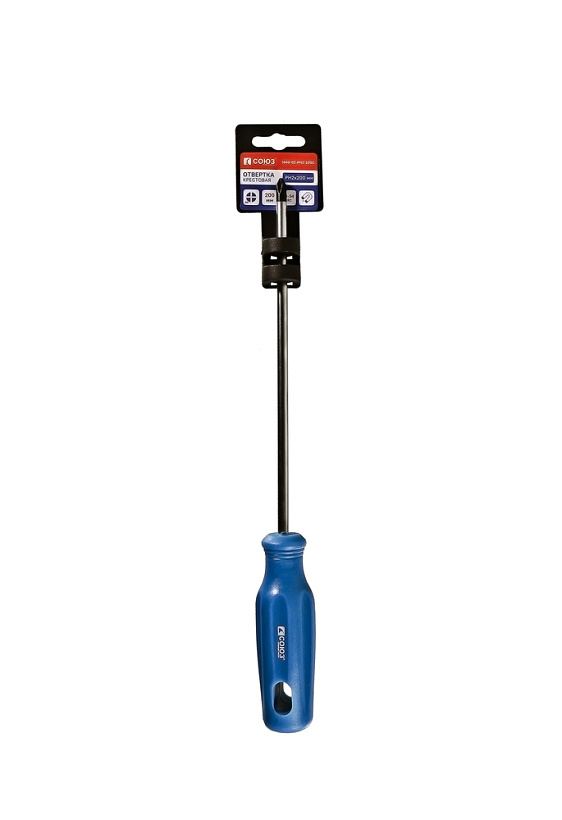Отвертки имеют эргономичную ПВХ рукоятку с отверстием для подвеса. Рабочая часть выполнена из качественной инструментальной стали, что определяет ее прочность и износостойкость. Жало отвертки намагничено для удержания метизов при работе.