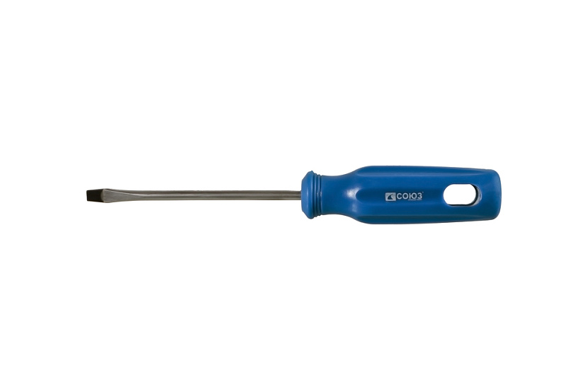 Эргономичная рукоятка из ПВХ с удобным отверстием для подвеса. Рабочая часть отвертки выполнена из высоколегированной хромованадиевой инструментальной стали и имеет высокую твердость и прочность, что определяет длительный срок службы инструмента.Возможно, вас заинтересует