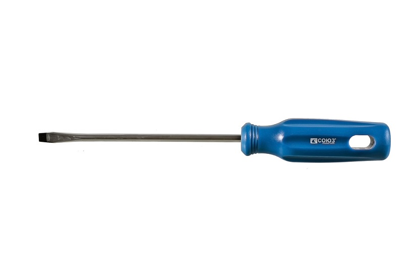 Эргономичная рукоятка из ПВХ с удобным отверстием для подвеса. Рабочая часть отвертки выполнена из высоколегированной хромованадиевой инструментальной стали и имеет высокую твердость и прочность, что определяет длительный срок службы инструмента.Возможно, вас заинтересует