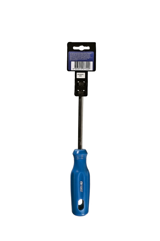 Эргономичная рукоятка из ПВХ с удобным отверстием для подвеса. Рабочая часть отвертки выполнена из высоколегированной хромованадиевой инструментальной стали и имеет высокую твердость и прочность, что определяет длительный срок службы инструмента.Возможно, вас заинтересует