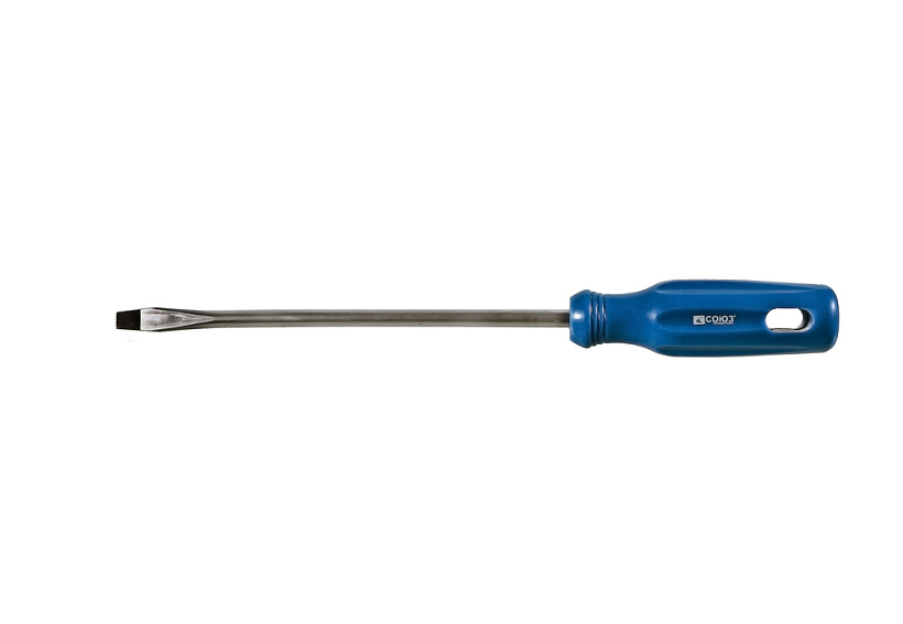Эргономичная рукоятка из ПВХ с удобным отверстием для подвеса. Рабочая часть отвертки выполнена из высоколегированной хромованадиевой инструментальной стали и имеет высокую твердость и прочность, что определяет длительный срок службы инструмента.Возможно, вас заинтересует