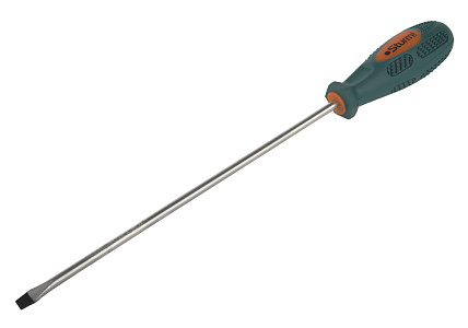 Рабочая часть отвертки выполнена из высоколегированной хромованадиевой инструментальной стали и имеет высокую твердость и прочность, что определяет длительный срок службы инструмента.