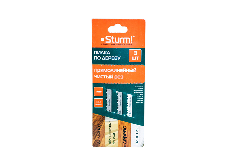 3. Полотна "STURM!" имеют европейский (EU) хвостовик, что позволяет их использовать для электролобзиков торговых марок STURM!, Энергомаш, Союз, Baumaster, AEG, Bosch, Hitachi, Makita, Metabo.