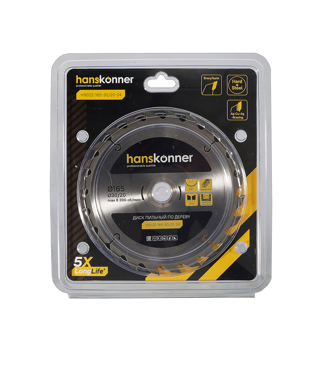 Пильный диск по дереву 165x30/20мм, 24 зубьев, Hanskonner