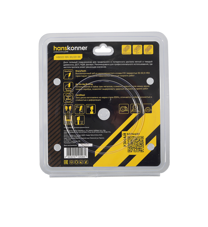 Пильный диск по дереву 165x30/20мм, 36 зубьев, Hanskonner