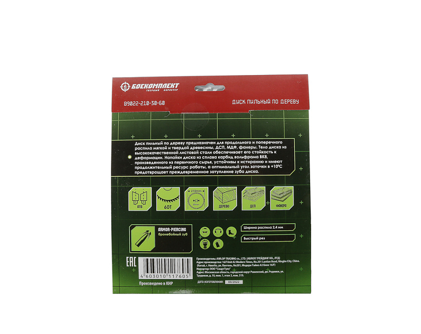 Пильный диск по дереву 210x30мм, 60 зубьев, БОЕКОМПЛЕКТ
