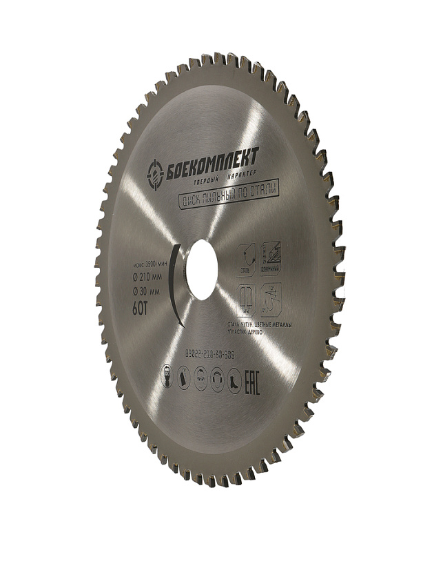 Пильный диск по СТАЛИ 210x30мм, 60 зубьев, БОЕКОМПЛЕКТ