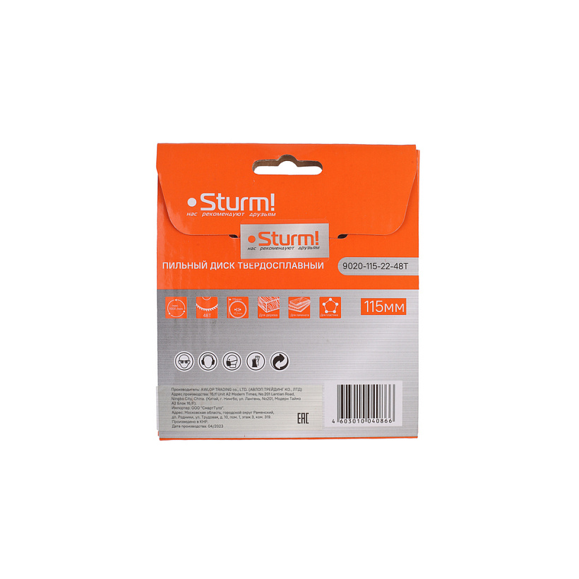 Пильный диск, размер 115x22x48 зубьев, твердосплавные напайки Sturm!