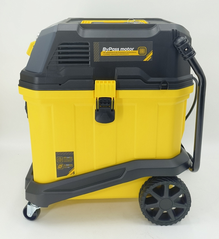 Помимо традиционного режима всасывания, конструкцией предусмотрен режим выдува воздуха – он идеально подходит для экспресс-очистки рабочих столов и верстаков, а также очистки штроб и т д. Также, пылесос может применяться и для сбора негорючих жидкостей. Благодаря мощной системе фильтрации, с применением высокоэффективного HEPA фильтра, предотвращается попадание пыли и абразивных частиц в двигатель.