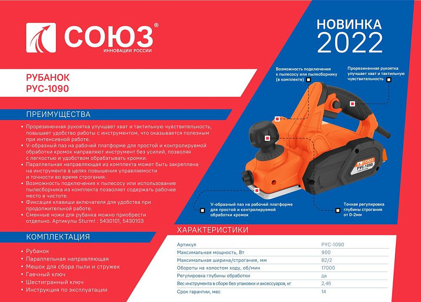 Рубанок СОЮЗ РУС-1090