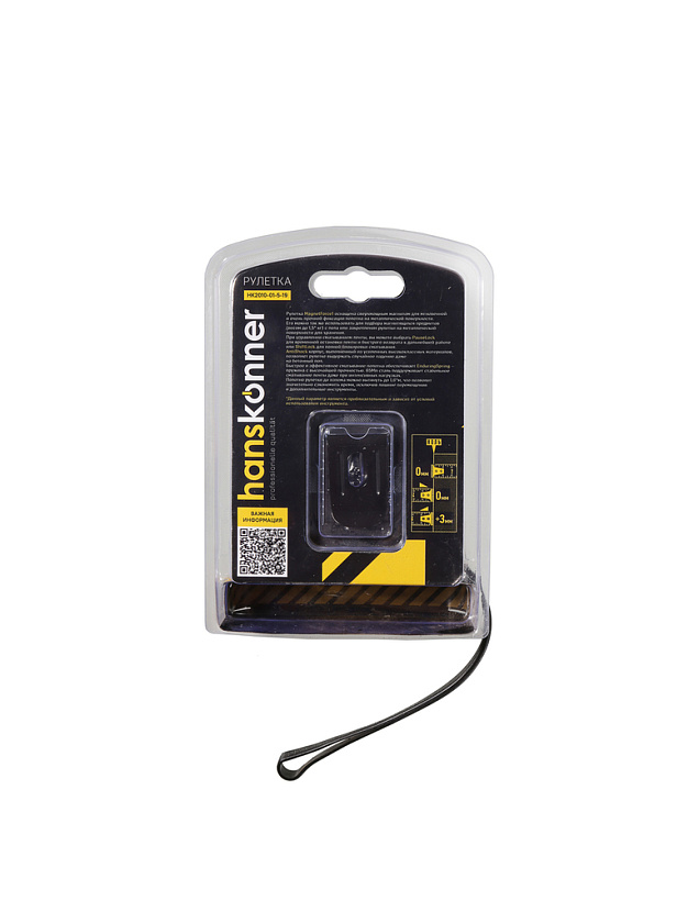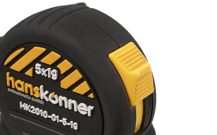 Рулетка 5x19мм, 2 стопа, корпус SoftTouch, супермощный магнит, Hanskonner