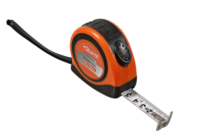 Рулетка 5x19мм, автостоп, двухсторонняя шкала, магнит на зацепе, Sturm!