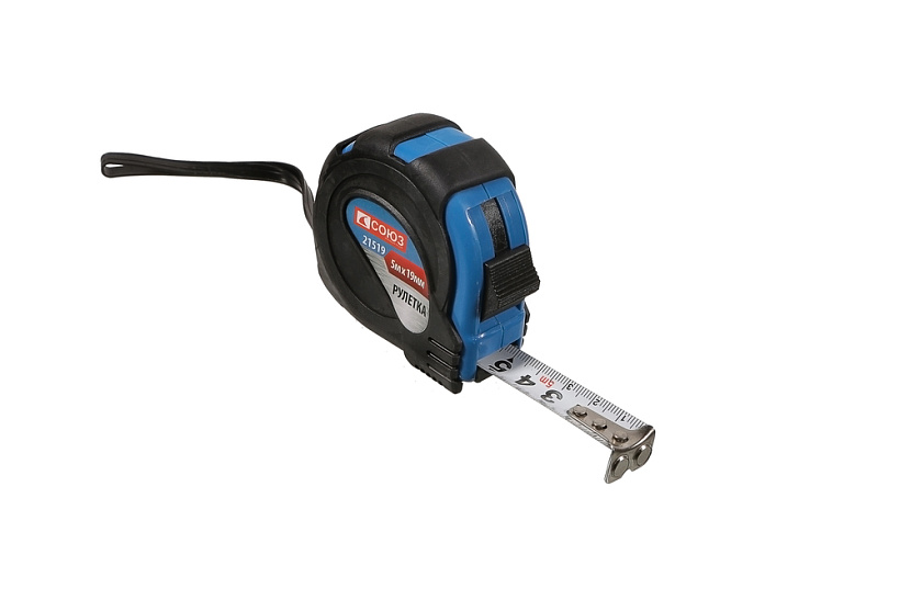 Рулетка 5x19мм, обрезиненная, магнит на зацепе, СОЮЗ