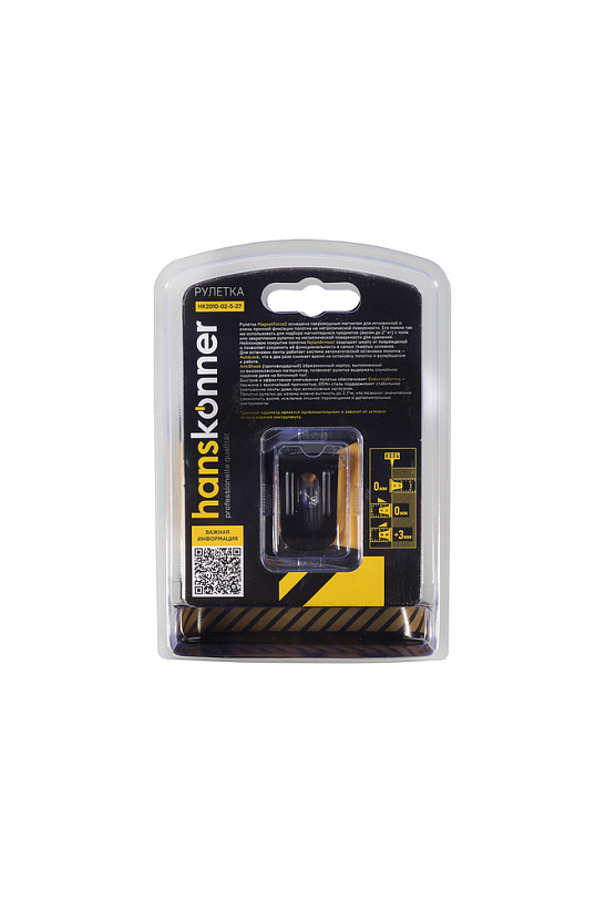 Рулетка 5x27мм, автостоп, двухстор., нейлон, супермощный магнит, Hanskonner