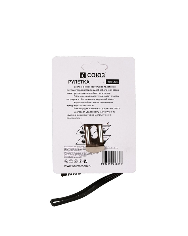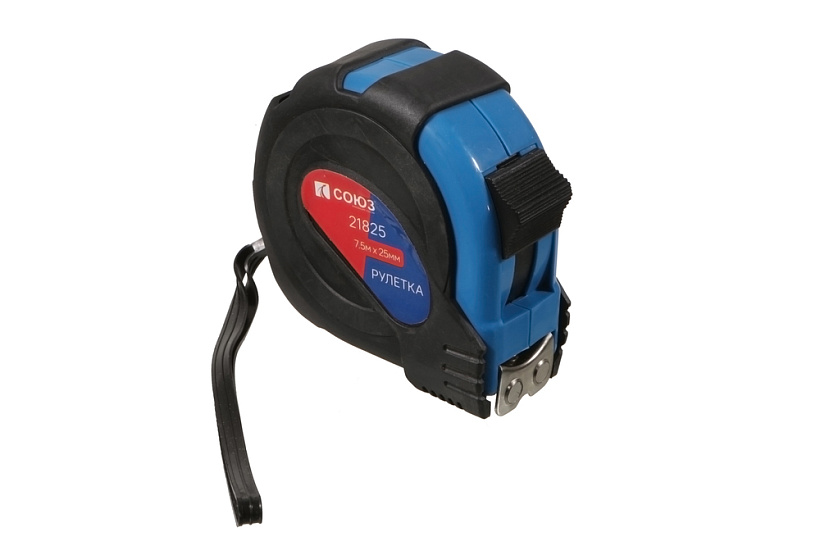 Рулетка 7,5х25мм, обрезиненная, магнит на зацепе, СОЮЗ