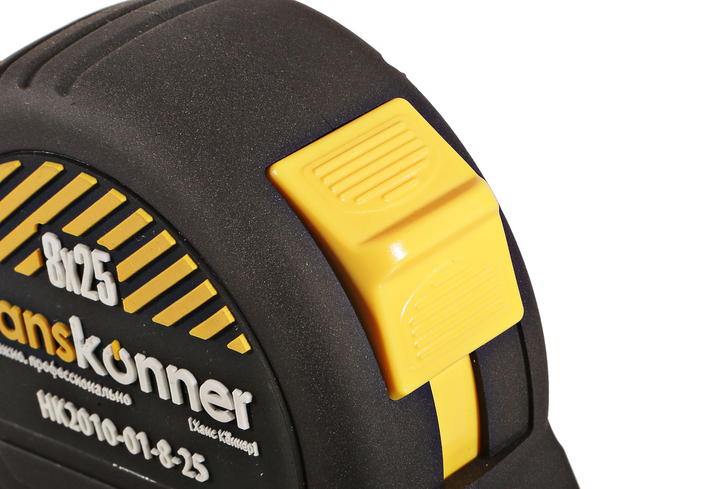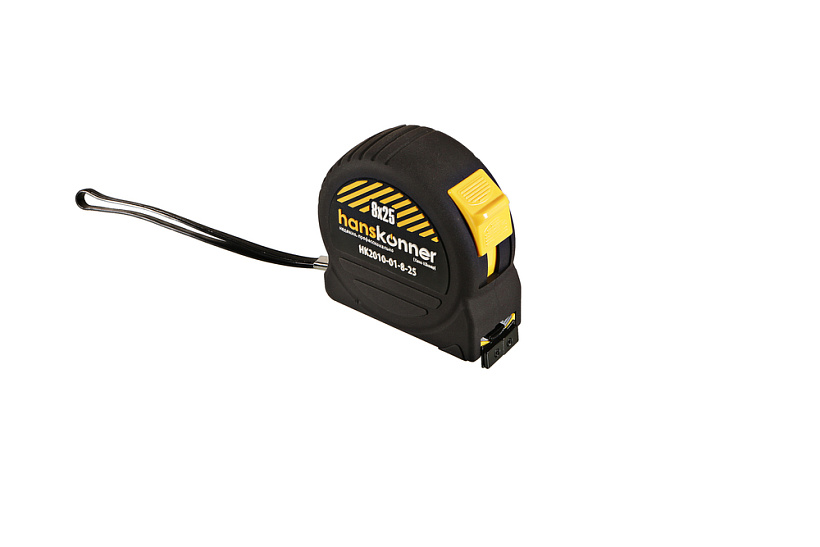 Рулетка 8x25мм, 2 стопа, корпус SoftTouch, супермощный магнит, Hanskonner