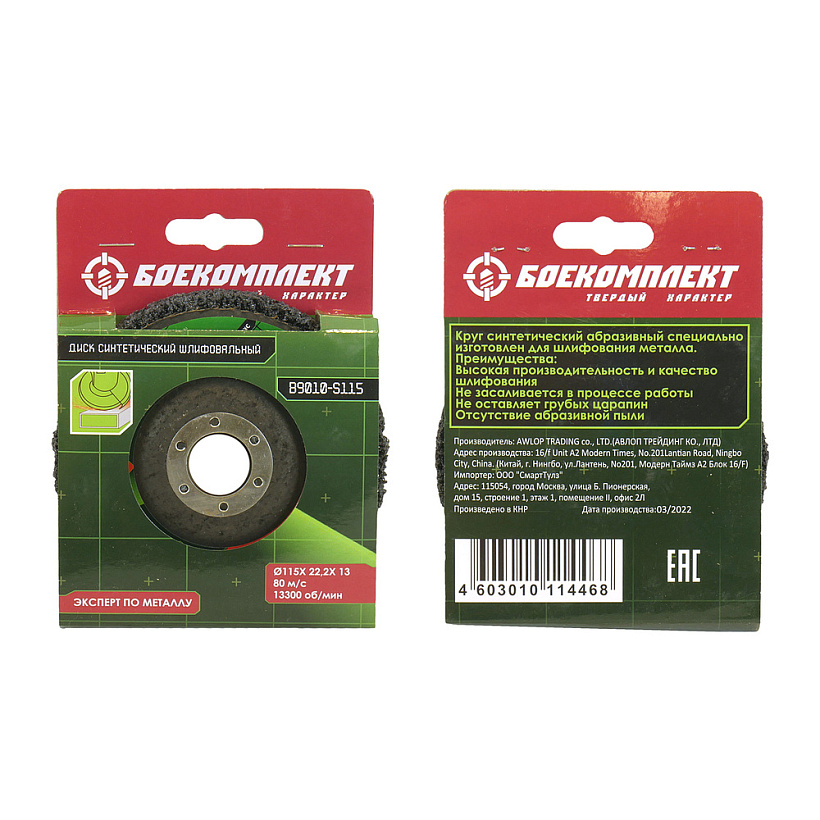 Диск синтетич. Шлифовальный Эксперт по металлу 115 мм, БОЕКОМПЛЕКТ