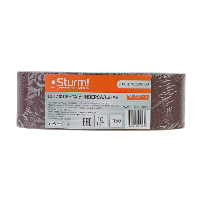 Шлифлента, 76x533мм, Р150, 10 шт, Sturm!