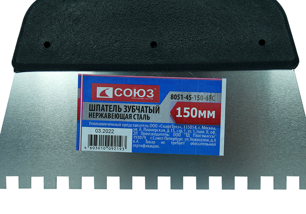 Шпатель 150 мм, зуб 6х6 мм СОЮЗ