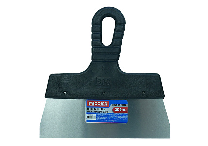 - 8051-25-200FC Шпатель, 200мм, нержавеющая сталь, пластиковая рукоятка, СОЮЗ Шпатели с пластиковой ручкой СОЮЗ обладает широким полотном, которое позволяет быстро и равномерно наносить, выравнивать, сглаживать шпаклевочный слой на обрабатываемой поверхности.