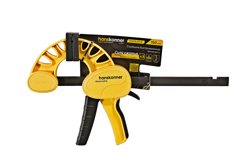 Струбцина быстрозажимная, 150мм, 180-200кгс, сжим-разжим, hanskonner