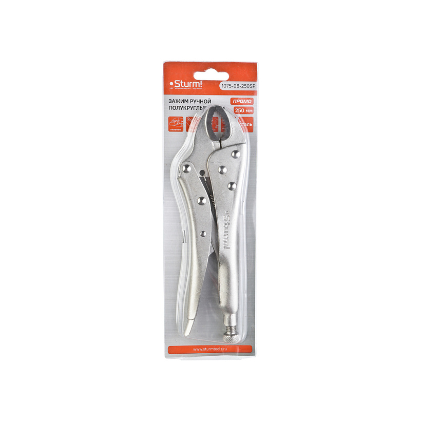 Зажим ручной, полукруглые губки, 250 мм, Sturm! PROMO