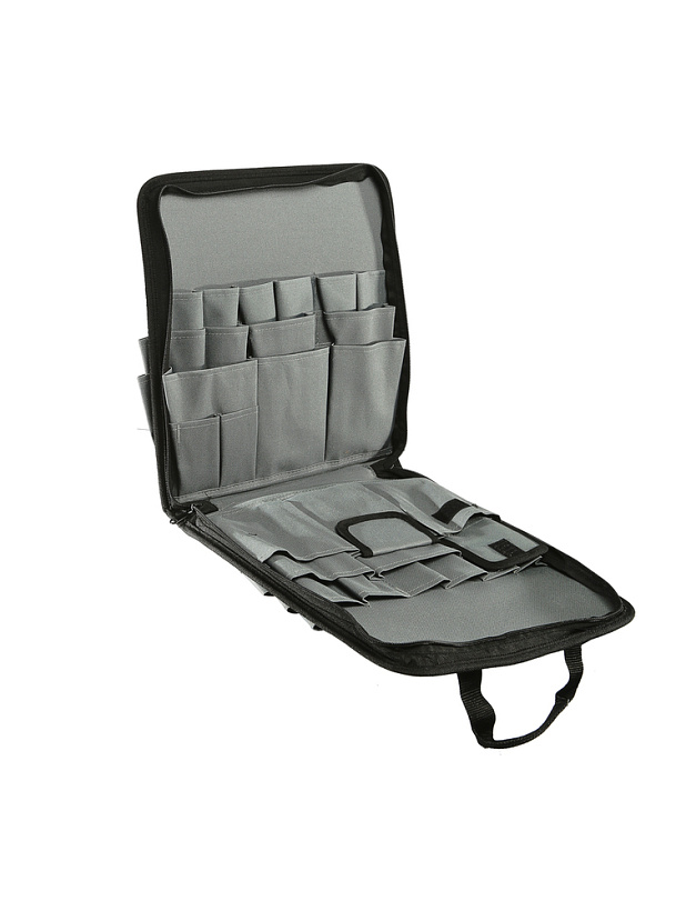 Съёмный органайзер во внутреннем отделе сумки помогает зонировать пространство для инструмента, а также сам снабжен карманами. Возможность его извлечения позволяет полностью контролировать эргономику хранения инструмента.