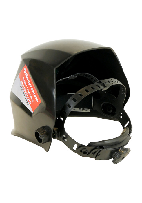 Щиток оснащен удобной крепежной 3D системой с простой настройкой под любой размер головы. Для точной подгонки наголовной ленты применен поворотный механизм с автофиксацией, а комфортное положение маски по высоте можно предварительно выставить с помощью реечного пошагового механизма. Ручка фиксации щитка для удобства имеет крупную насечку, позволяя пользователю выполнить быстрый зажим, не снимая сварочных рукавиц.