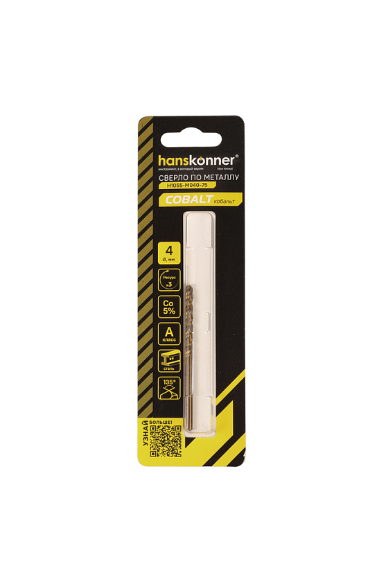 Сверло по металлу COBALT 4,0х75мм Hanskonner