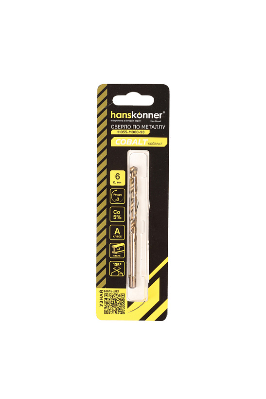 Сверло по металлу COBALT 6,0х93мм Hanskonner