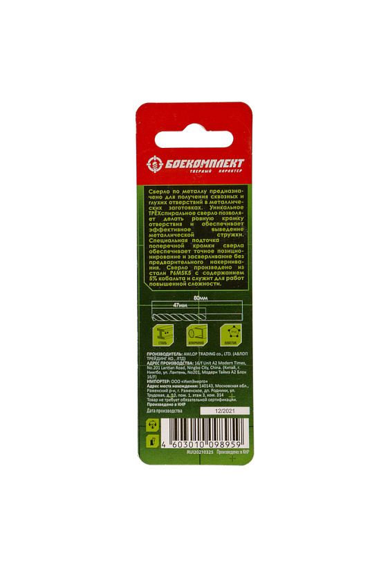 Сверло по металлу ТРЁХСПИРАЛЬНОЕ Кобальт 4,5х80мм БОЕКОМПЛЕКТ